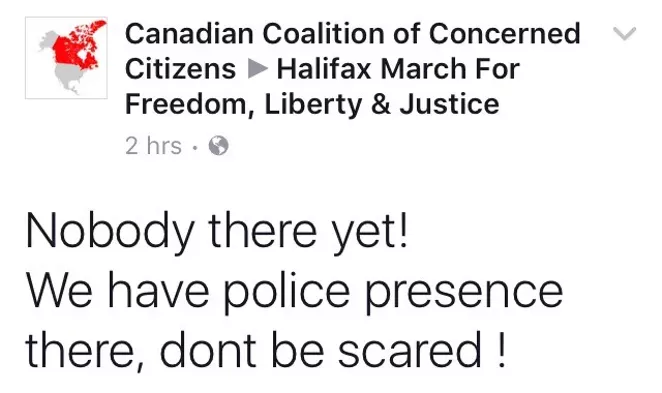 Police separated M103 protesters and counter-protesters at larger rallies in Toronto and Calgary, but if the event's Facebook page is to be believed, not many people showed up locally.
