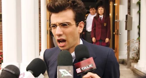 The son of successful Montreal businessman David (Saul Rubinek), Leon (Jay Baruchel) is dissatisfied with his bourgeois lifestyle and desperate to empower the workers in his dad’s factory. You see, Leon believes he is the reincarnation of Leon Trotsky, and as such he has a flow-chart of future achievements he believes are his destiny based on Trotsky’s life, including getting married to Alexandra (a doctoral student he meets, played by Emily Hampshire) and avoiding assassination, but only for so long. His frustrated father consigns him to public school, which only fuels Leon’s fire, as he embraces a student body disenfranchised, lorded over by an uncaring, fascistic faculty, led by Principal Berkhoff (a jaw-clenching Colm Feore) and bureaucratic school board, personified by Ms Archambault (Genevieve Bujold).