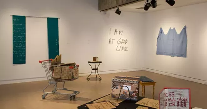 That question, and the idea that everyone treads between security and vulnerability, has propelled her for the past several years. In "The Good Life" (2001), Jarvis transforms a note left by her brother, a schizophrenic, into a wall-mounted statement made of welded steel rods: I am at Good Life.