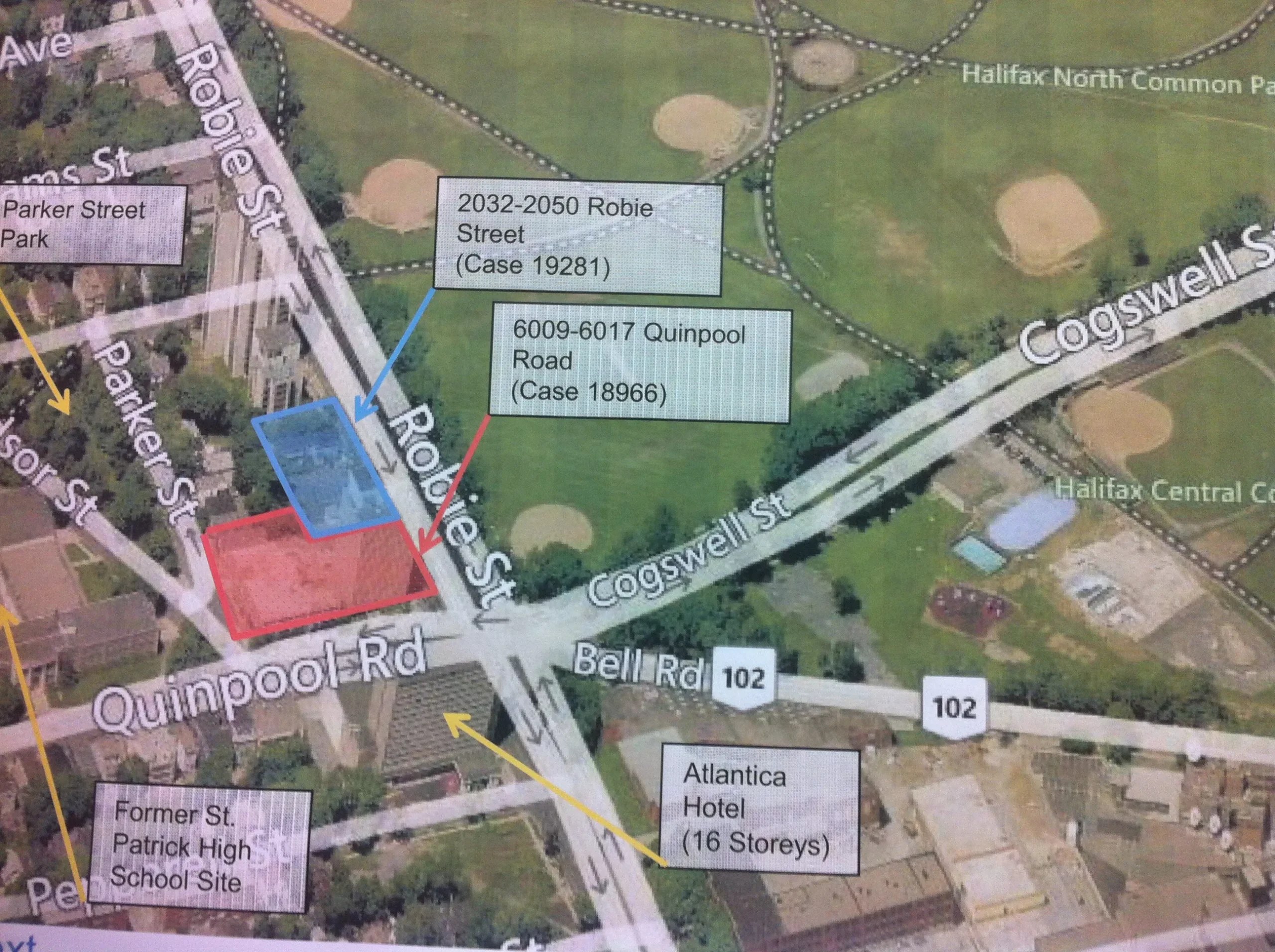 Two closely-linked developments at the intersection of Robie Street and Quinpool Road are currently working their way through the municipal planning process labyrinth. It’s early days, but what’s being proposed could dramatically alter one of Halifax’s most visible corners.